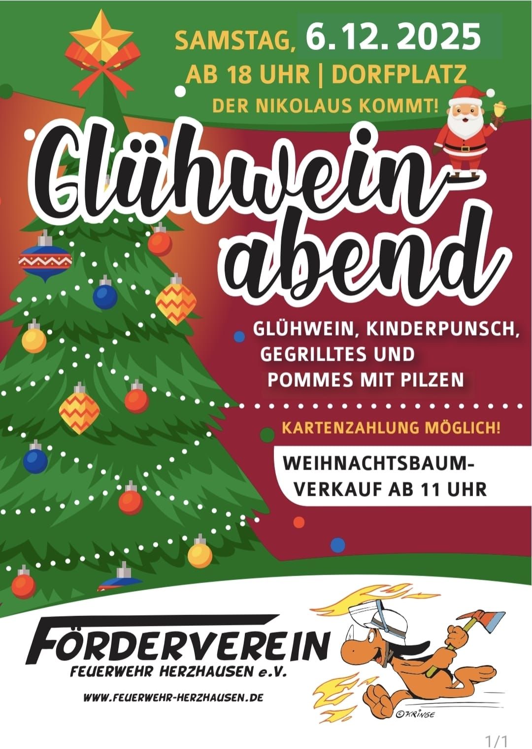 Glühweinabend Herzhausen von Markus Roddey | Ihr möchtet am Samstag einen geselligen Abend verbringen? Dann besucht doch die Einheit Herzhausen ab 18.00 Uhr auf dem Dorfplatz in Herzhausen! (WB6)